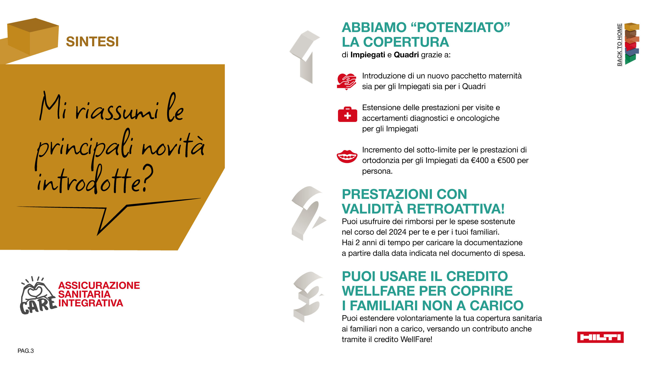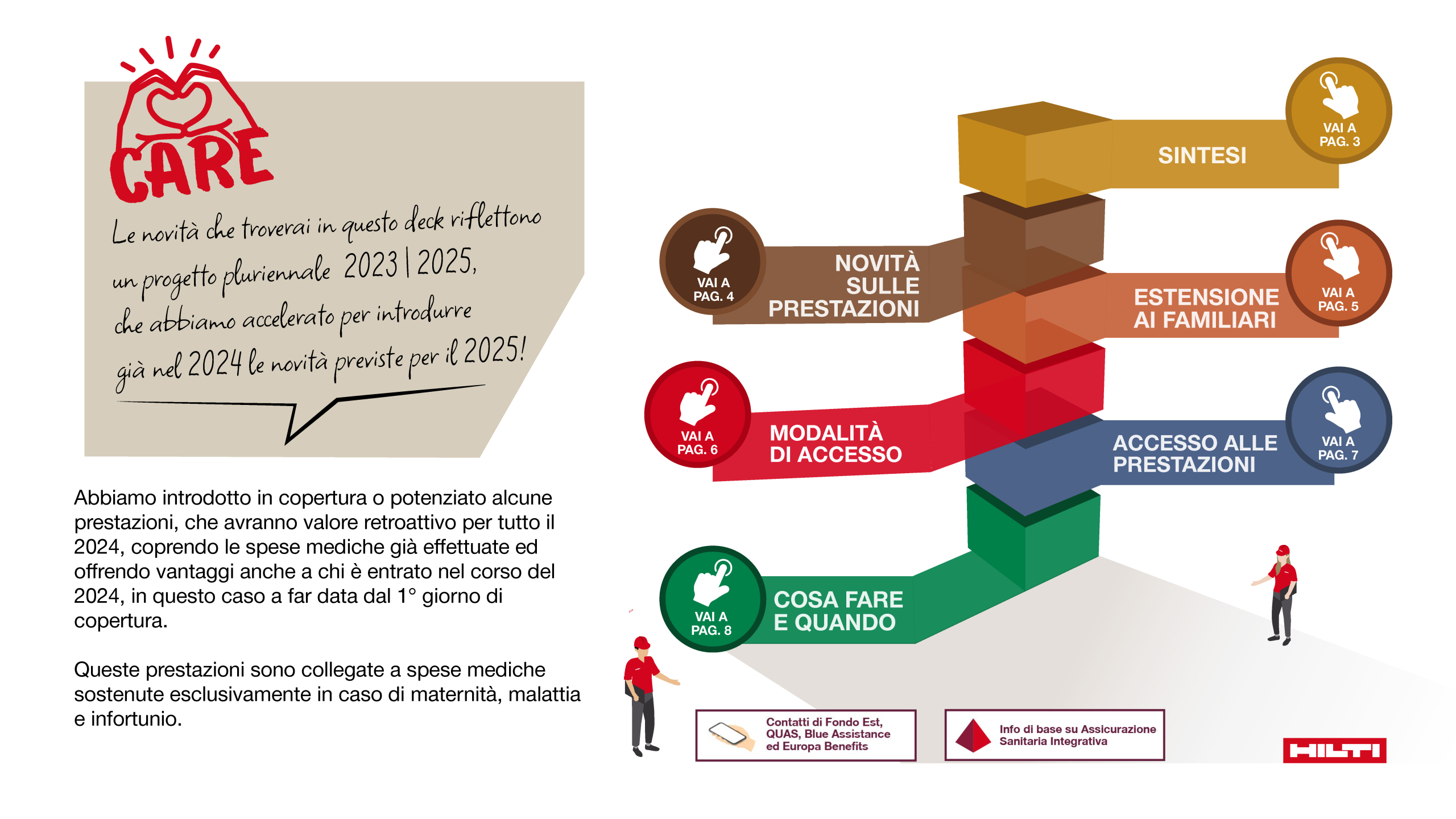 Supportare Hilti nell’introduzione di un nuovo programma di Welfare, rendendolo chiaro, accessibile e coinvolgente per tutta la popolazione aziendale e favorendo una cultura orientata al benessere psicofisico, con un approccio olistico.