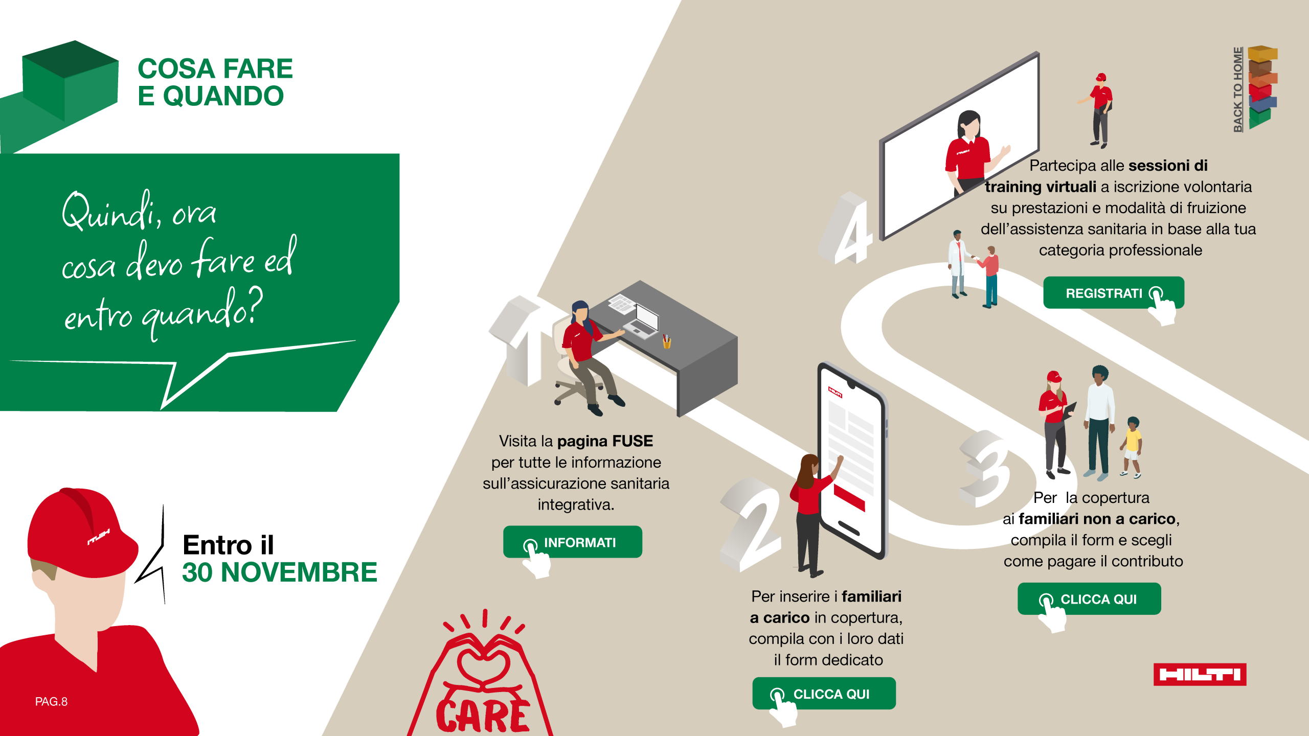 Il concept è stato declinato in una campagna di comunicazione interna multicanale, con banner, email, Vademecum, leaflet e poster per gli spazi aziendali, fisici e digitali ,per garantire visibilità continua, coerenza visiva e un messaggio immediato e memorabile.